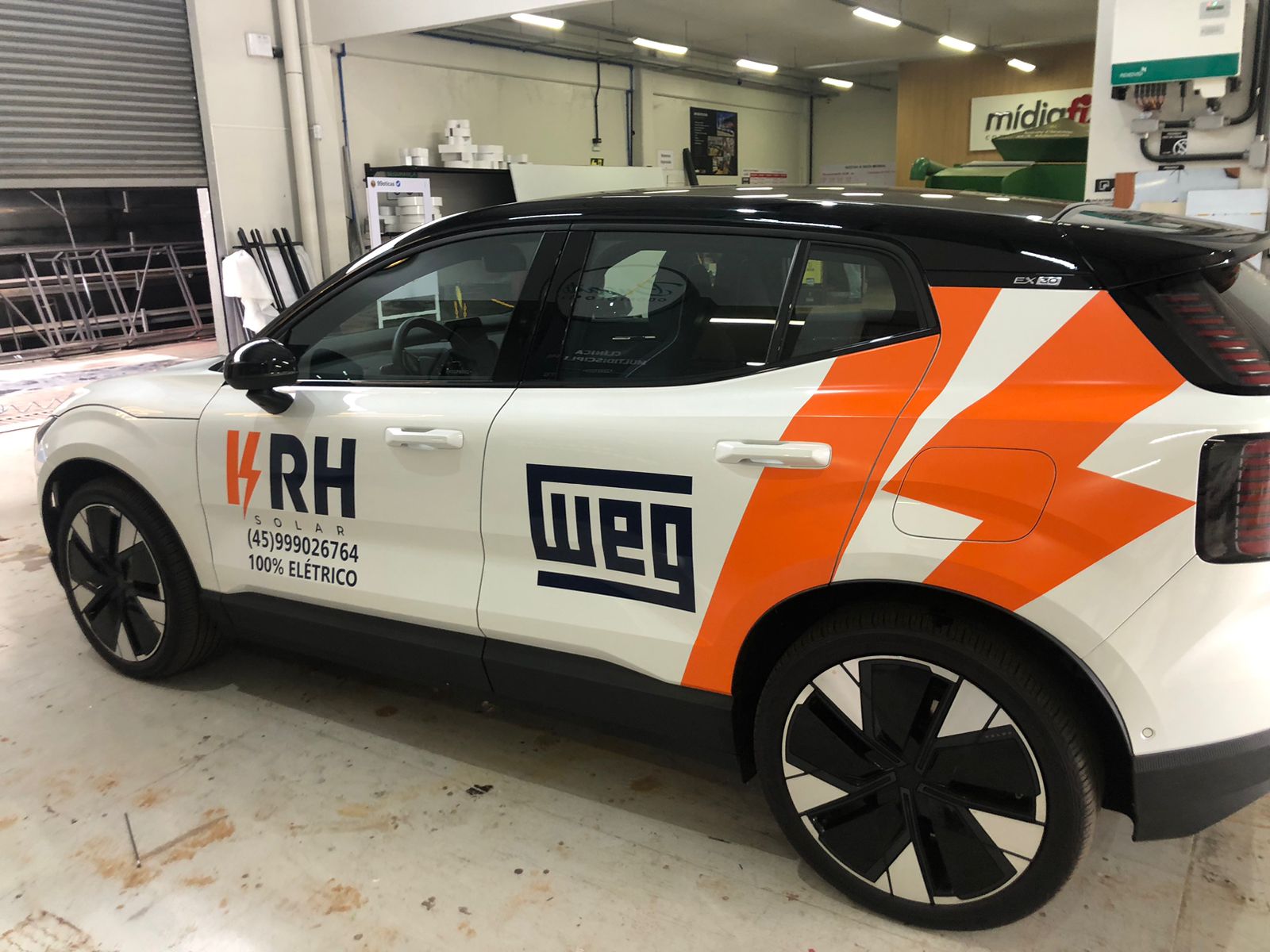 Marca forte dentro da loja: recepção, parede e áreas de atendimento.